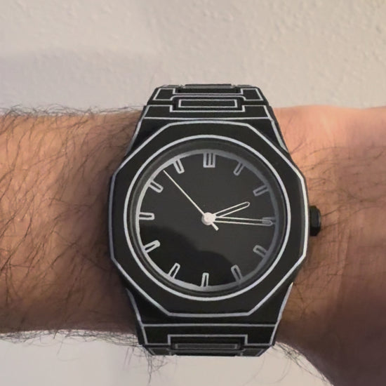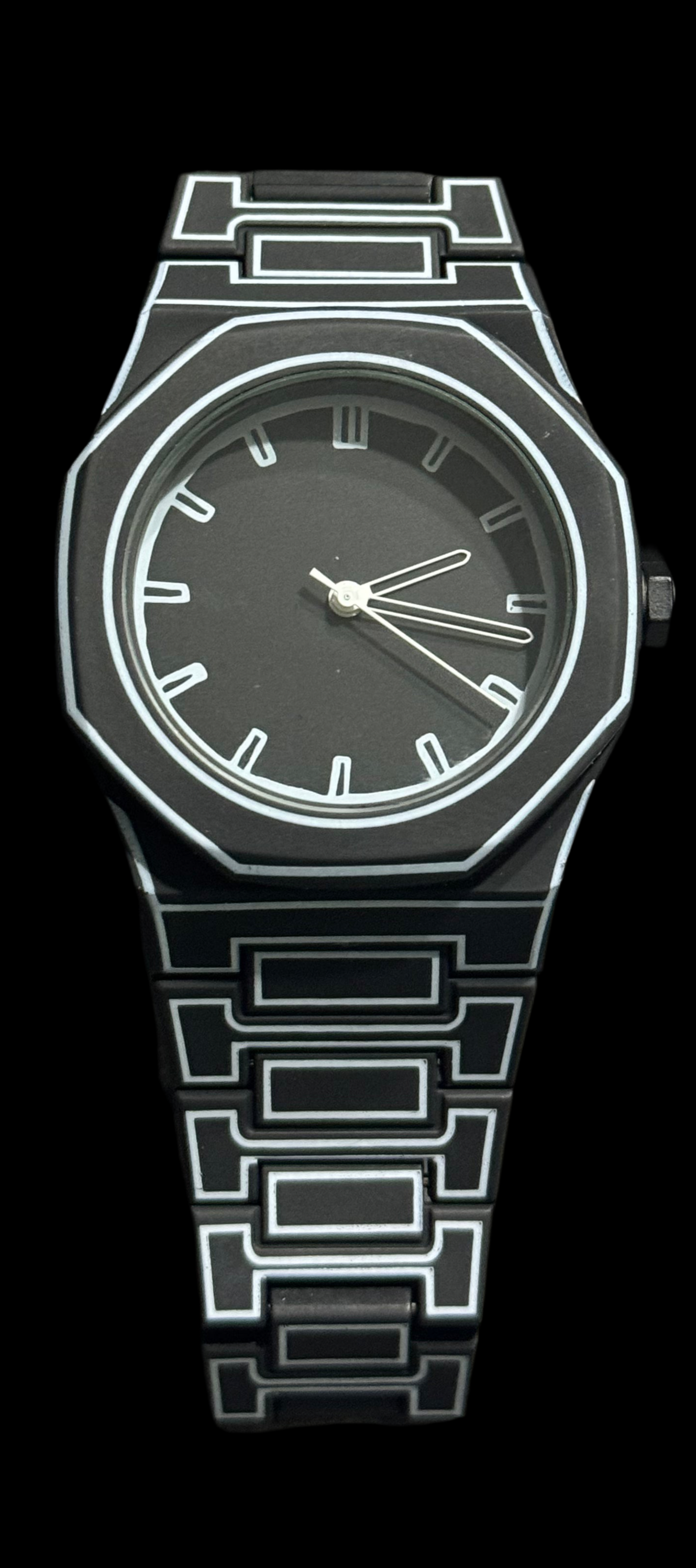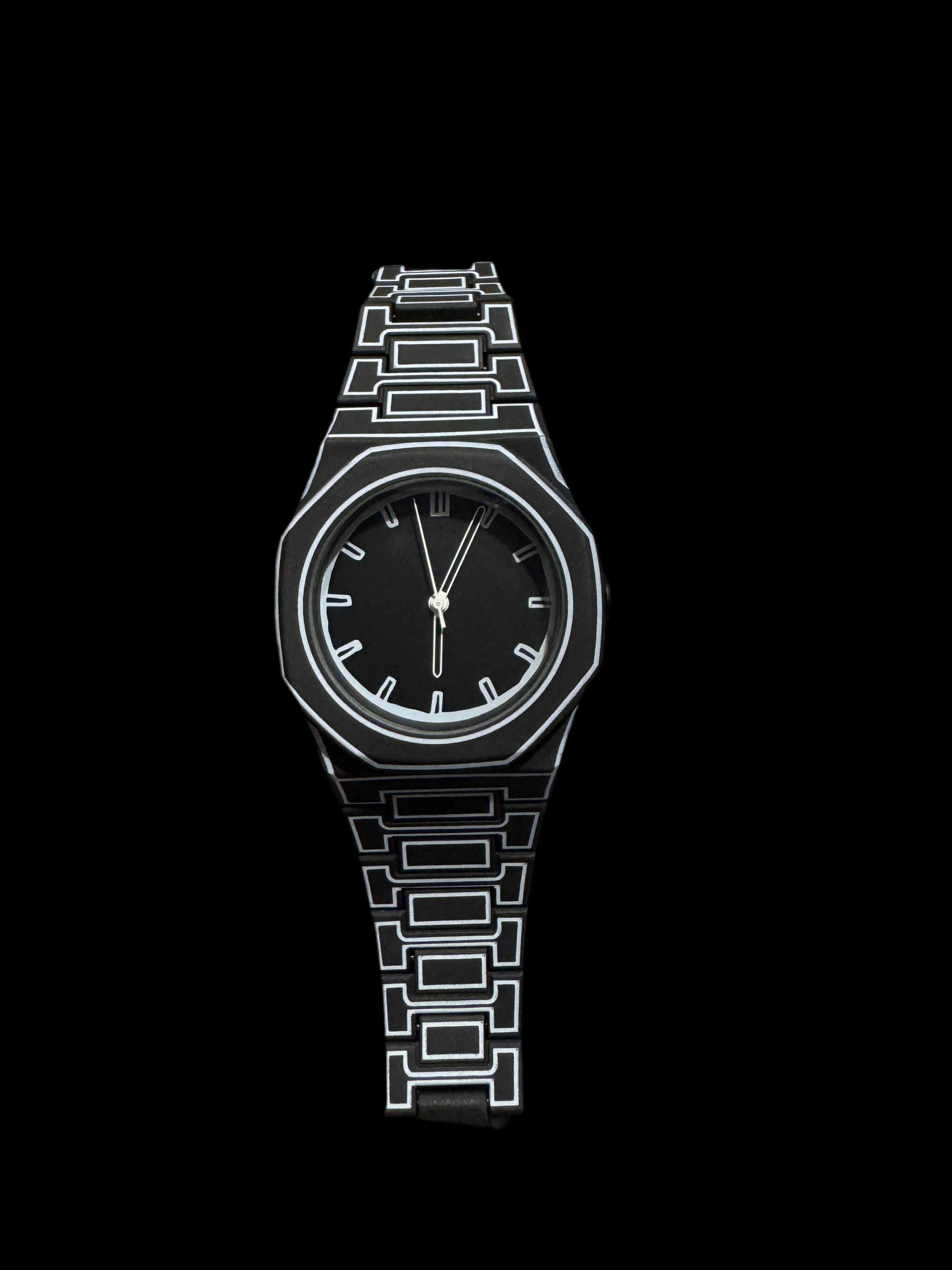 Crafted in all-black with sharp white outlines, Nightfall is the darker side of Midnight Graffiti-built for those who move in silence but leave a lasting impression. With its bold contract and minimalist design, this timepiece captures the raw edge of the streets after dark. Whether you're stepping into the club or cruising through the city lights, Nightfall is more than a watch-it's a statement.